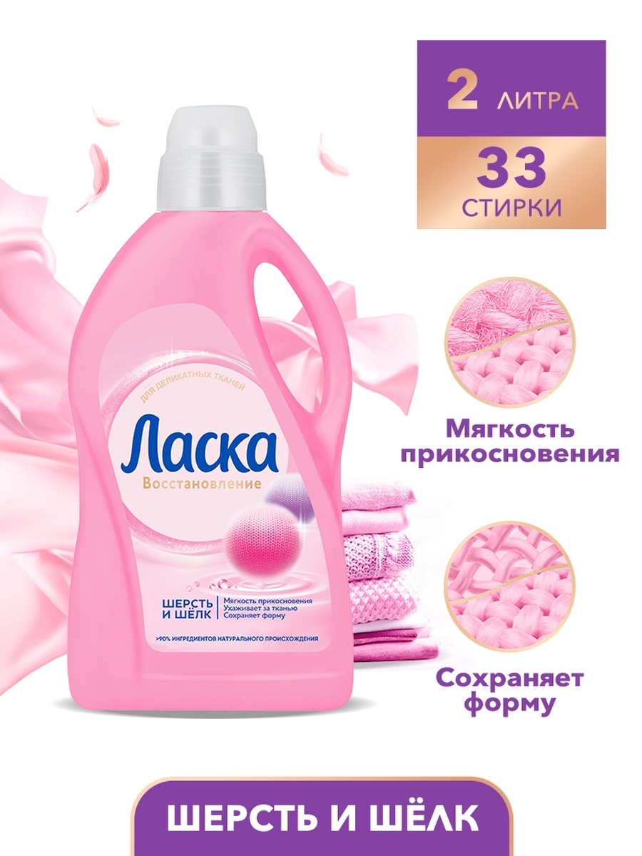 Гель для стирки деликатный (шерсти и шёлка) тканей Ласка, обзор, состав, расход, отзыв после стирки
