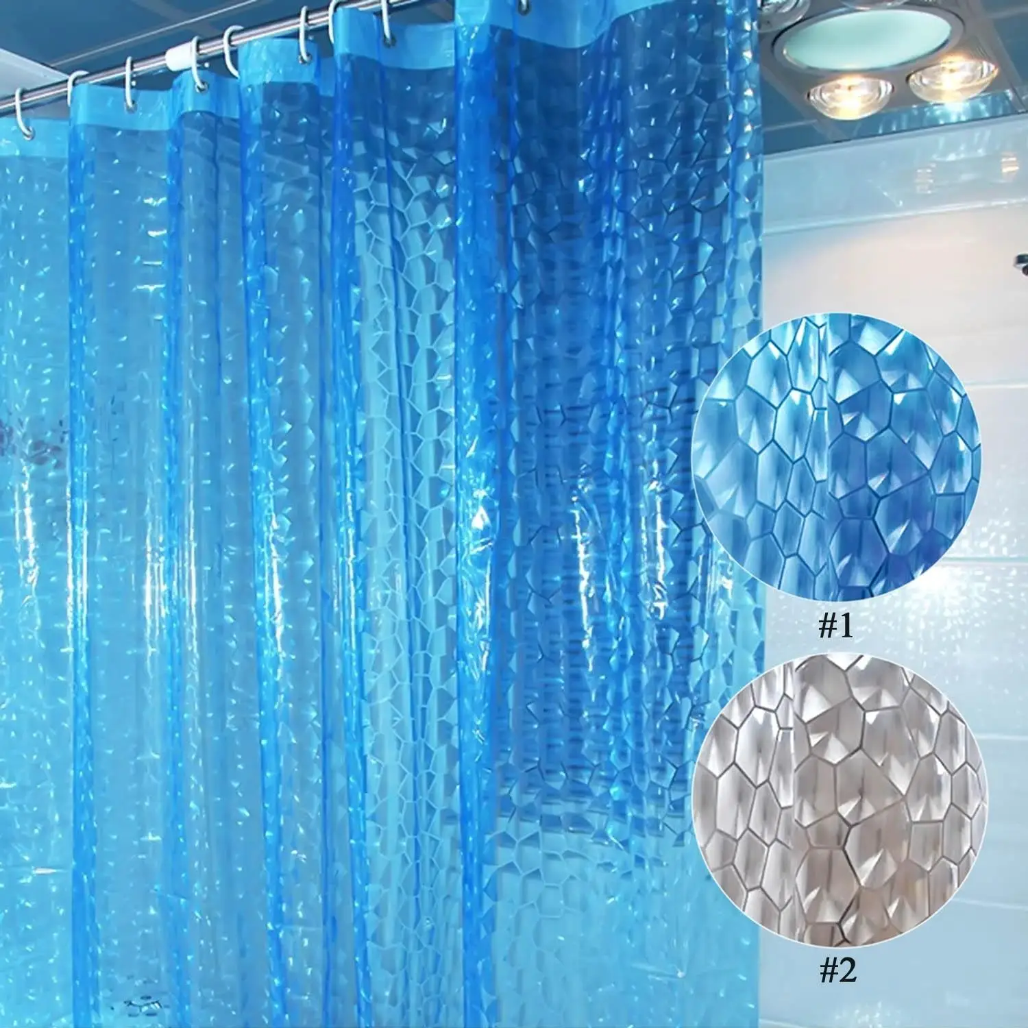 Шторы для ванной 3d прозрачные PEVA/EVA виниловые с кольцами на штангу