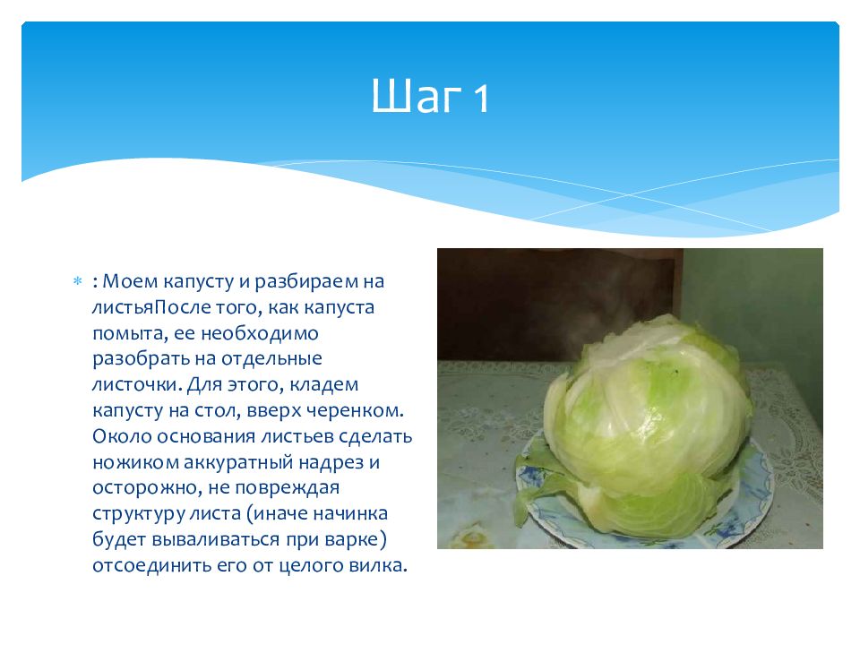 Поставьте под кран небольшую миску с водой и аккуратно разберите головку капусты на листья. Поместите каждый лист под струей воды и тщательно промойте его, особенно внимательно смотря на складки и участки с грязью.