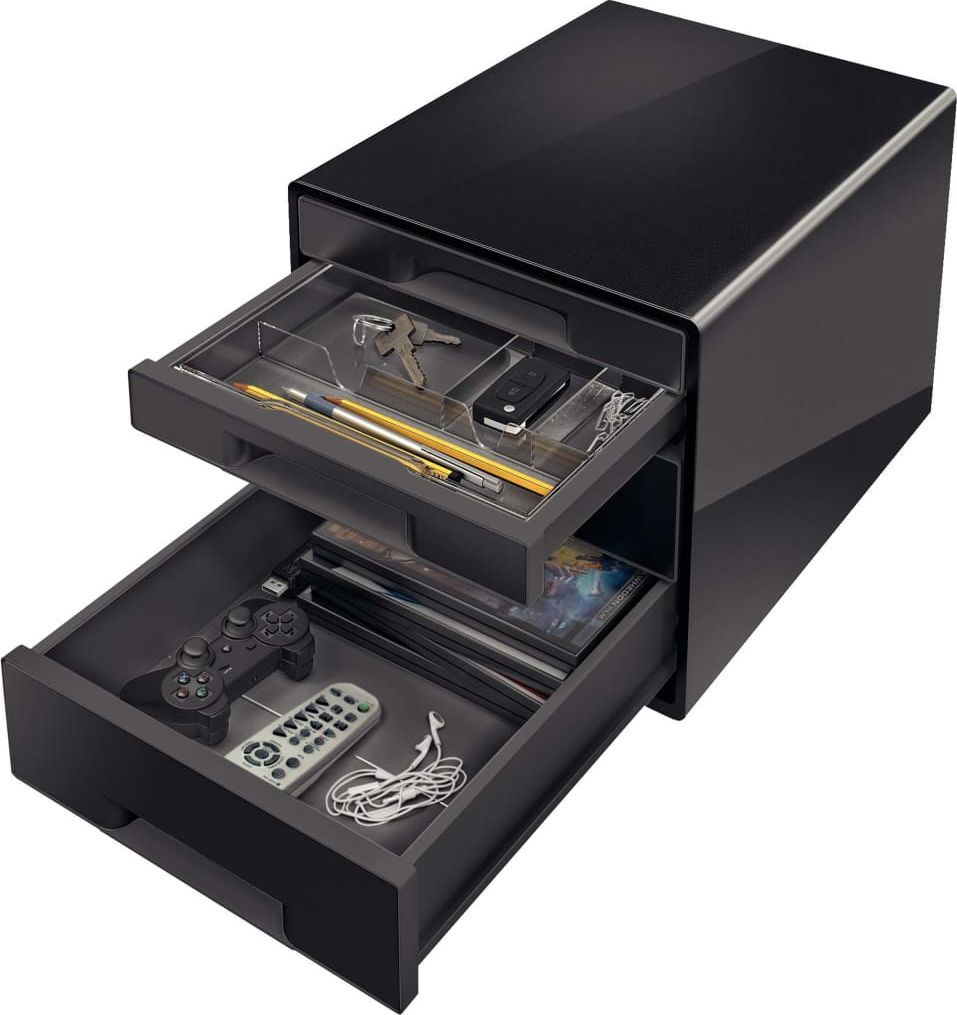 Разделите ящики по функциональности. Отведите отдельные ящики под канцелярские принадлежности, письменные инструменты, скрепки и кнопки.