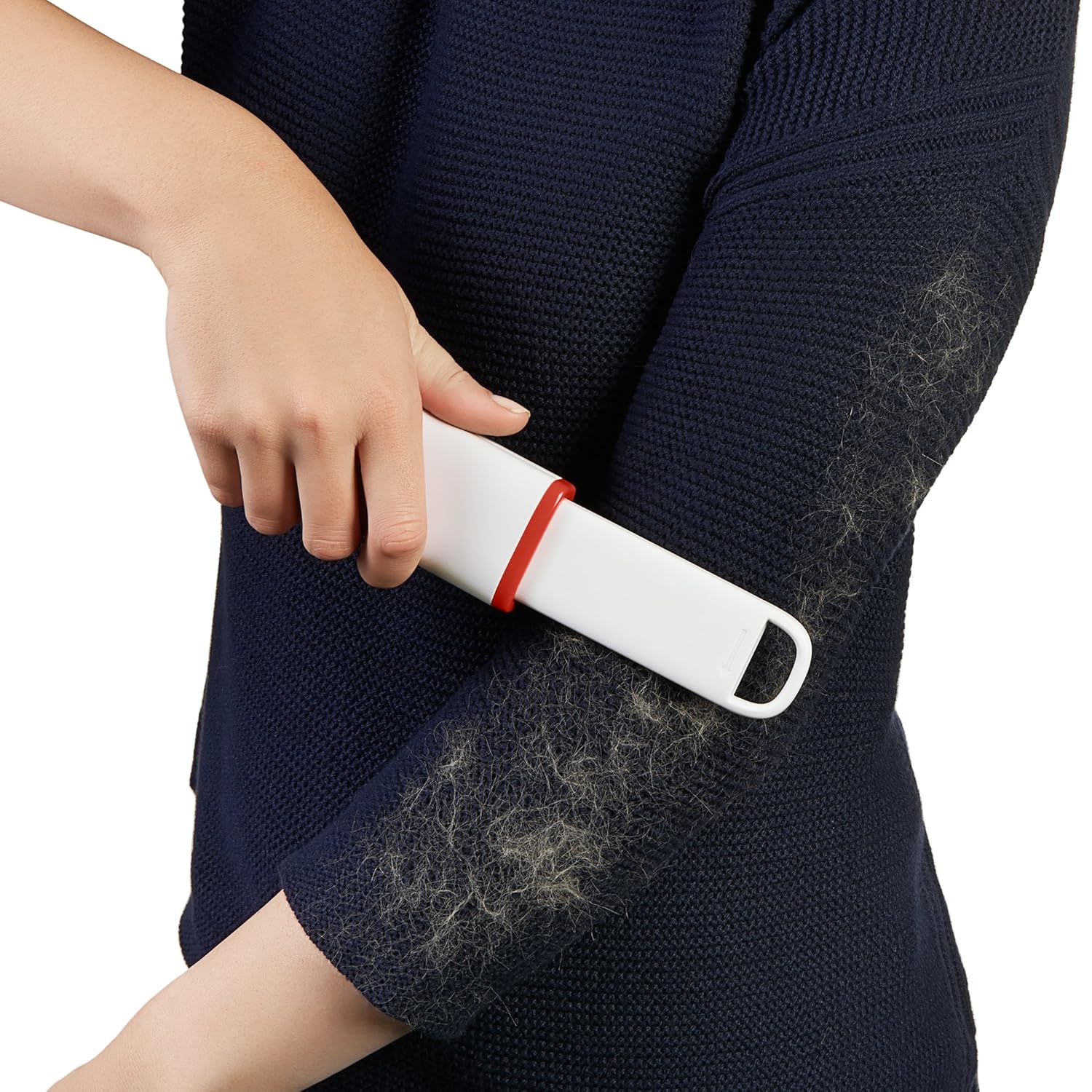 Используйте липкую резиновую щетку для удаления шерсти с одежды. Просто протрите ее по поверхности и все шерстинки останутся на щетке.