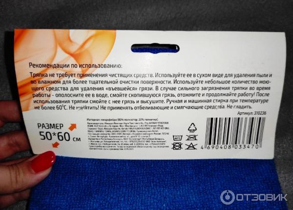 Не рекомендуется использовать тряпку Озон для чистки поверхностей, которые контактируют с пищей, так как она может содержать остатки химических веществ.