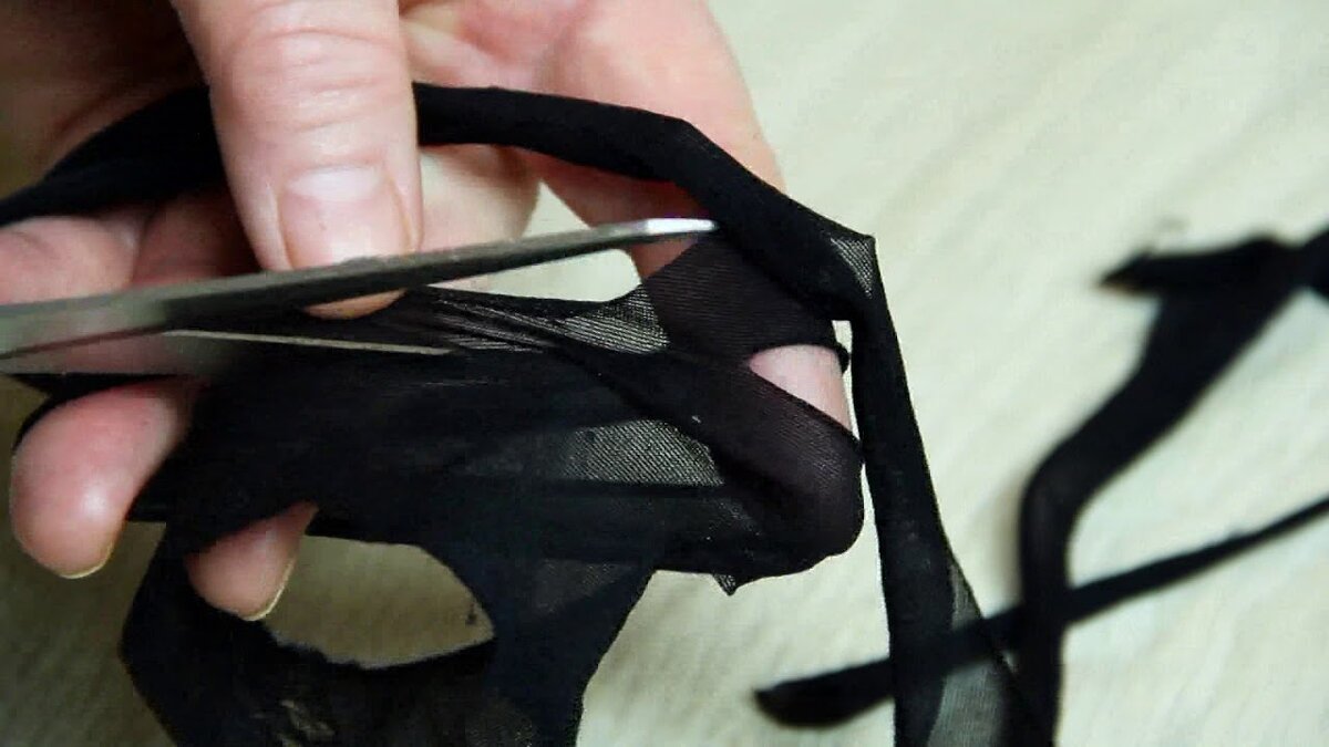 Используйте ножницы для резки порванного куска колготок, чтобы предотвратить дальнейшее разрывание материала.