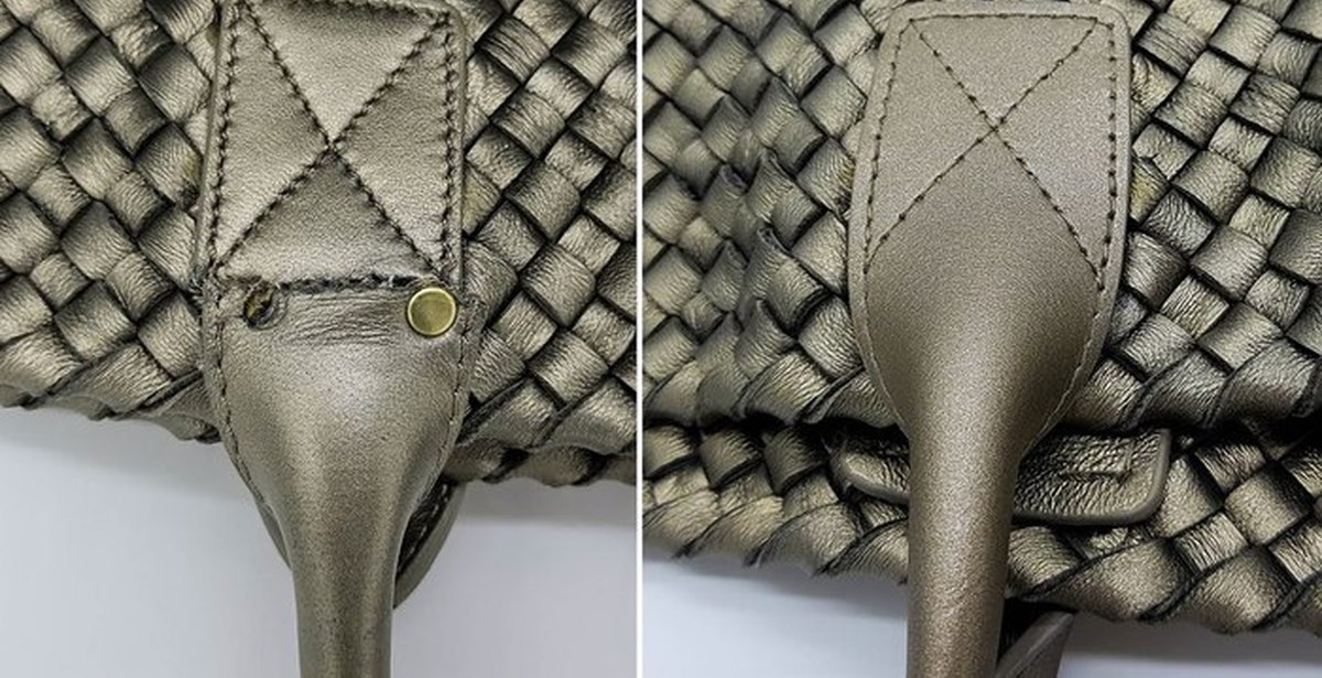 Ремонт креплений ручек кожаной сумки Louis Vuitton и кожаных углов