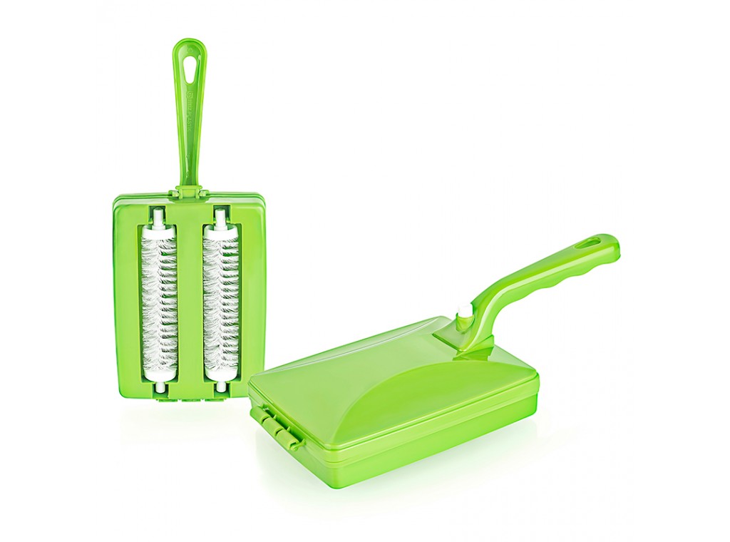 210-015-P Механическая щетка для сбора пыли и мусора с ковров и мебели (3 щетки, розовая)