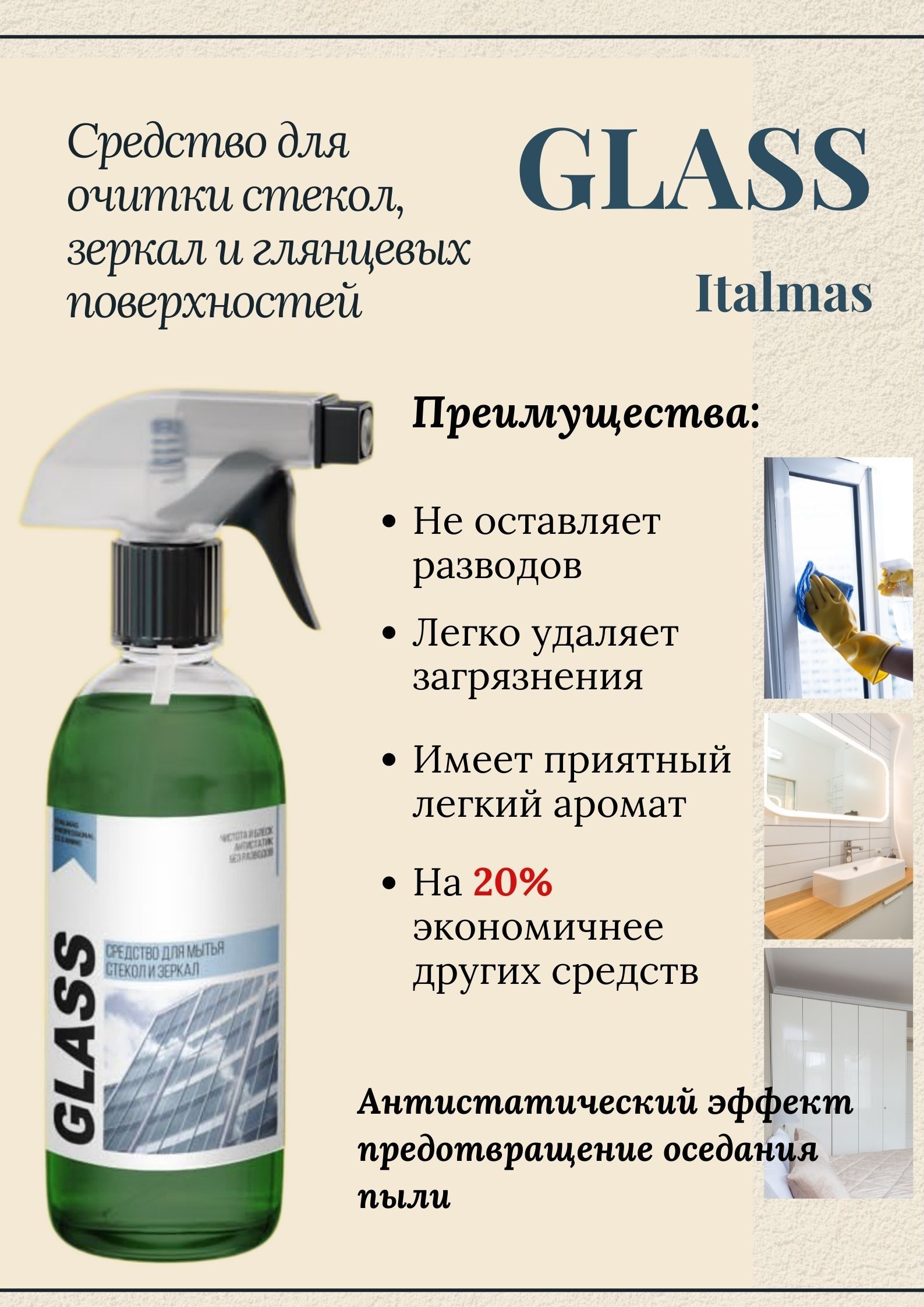 Выбирайте спрей с безопасным составом, который не повреждает поверхности и не оставляет разводов.
