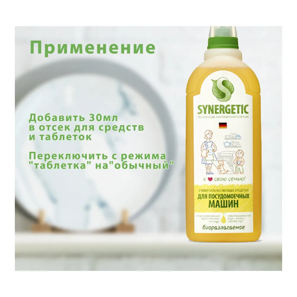 Помните, что Synergetic для мытья посуды таблетки предназначены только для использования в посудомоечной машине и запрещено использовать вместо моющего средства для ручной мытья посуды.