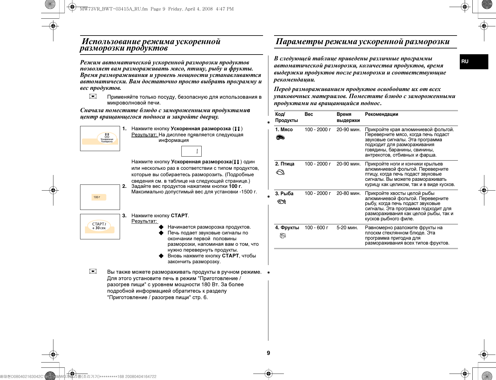 Режим ускоренной разморозки в микроволновке Samsung