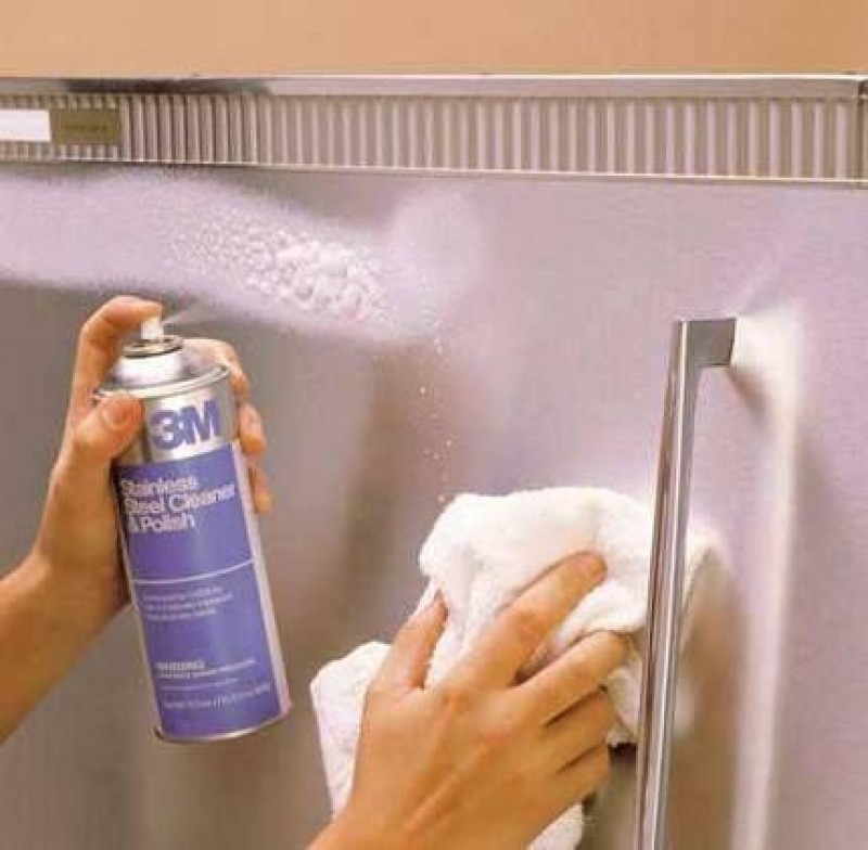 Устранить царапины на нержавейке (на примере холодильника)